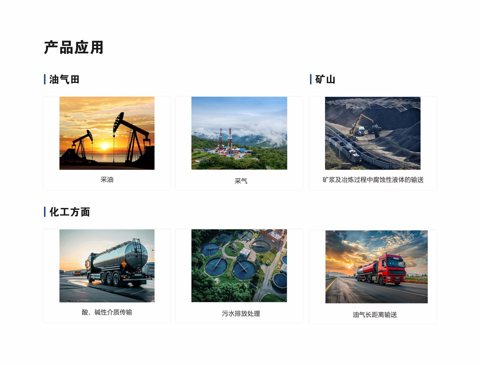 4.输送能力强:管材内壁光滑,不结垢,耐磨损,输送能力持久不变,减少了输送管线的维护成本。